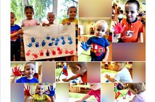 Коллективную работу в технике рисование ладошкой сделали дети группы "Умники и умницы". Рисование ладошками позволяет детям ощутить не забываемые положительные эмоции!/Техникада коллектив эшне "Умники и умницы"төркеме балалары кул белән рәсем ясаганнар. Кул белән буяу балаларга онытылмаслык уңай эмоцияләр тоярга мөмкинлек бирә!