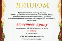 Поздравляем победителей педагогов ДОУ 17 в муниципальном конкурсе " Мин яратам сине, Татарстан!" в номинации "Архитектура Татарстана" макет "Умиление"