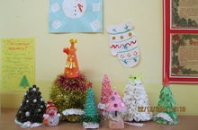 выставка поделок подготовленная родителями и детьми младшей группы №5 "Умники и умницы" проходит в ожидании наступающего Нового года