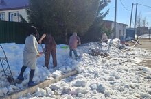 субботнике по раскидыванию снега на территории детского сада. Весенний солнечный день способствовал отличному настроению