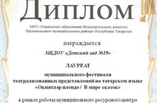 Муниципальное бюджетное дошкольное образовательное учреждение "Детский сад №19" Чистопольского муниципального района Республики Татарстан/ Татарстан Республикасы Читай муниципаль районы "19 нче номерлы балалар бакчасы"мәктәпкәчә муниципаль бюджет белем бирү учреждение