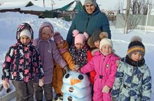 Снеговик - это один из символов зимы. Сегодня на прогулке с детьми сделали необычного снеговика.
