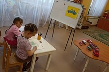 Рисование "Грузовая машина" в старшей группе. Ребята учились изображать предметы, состоящие из нескольких частей прямоугольной и круглой форм