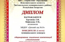 Муниципальное бюджетное дошкольное образовательное учреждение "Детский сад №19" Чистопольского муниципального района Республики Татарстан/ Татарстан Республикасы Читай муниципаль районы "19 нче номерлы балалар бакчасы"мәктәпкәчә муниципаль бюджет белем бирү учреждение