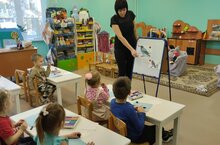 Ахметова Гулия Гумеровна - воспитатель татарского языка на занятии с детьми подготовительной группы закрепляет слова (существительные, глаголы-действия), а потом знакомит детей с произведением Абдулы Алиша "Болтливая утка".