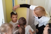 Вчера старшая группа в рамках тематической недели "Будь здоров" была на экскурсии в медицинском кабинете ДОУ. Дети познакомились с медицинским кабинетом, с его местоположением в здании детского сада, с медицинским оборудованием, его назначением. Целью экскурсии было познакомить детей с профессией медицинской сестры детского сада, воспитывать уважение к труду медицинского работника.
