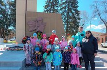 В преддверии праздника Дня Победы, средняя и старше-подготовительная группы сходили на экскурсию к Вечному огню и по Аллее героев, где возложили цветы в память о наших защитниках нашей Родины.