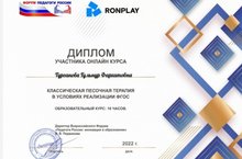 Наш молодой специалист, Турганова Гульнур Фархатовна, прослушала онлайн курс "Классическая песочная терапия в условиях реализации ФГОС". Желаем успехов педагогу в практическом применении полученных знаний в работе с ребятами!