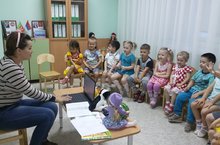 Мәктәпкәчә белем бирү учреждениясендә тәрбиячеләр арасында "Тәрбияче мәктәпкәчә белем бирү-2015" смотр конкурсның беренче туры дәвам итә, тәрбиячеләр ачык шөгыльләр күрсәтәләр.
