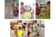 Накануне праздника Дня России в группе "Витаминки" прошла познавательная беседа на тему: "День России". Тем самым педагог стимулировал интерес воспитанников к истории своей страны, углубил знания о культуре России и почтительное отношение к государственным символам Российской Федерации. Затем детям были предложены дидактические игры "Собери флаг и герб России и Республики Татарстан", "Укрась салфетку", домино "Татарский орнамент". Ребята младшей группы «Знайки» познакомились с российским флагом и сделали коллективную работу флаг из цветов России./Россия көне алдыннан "Витаминки" төркемендә "Россия көне"темасына танып белү әңгәмәсе узды. Шул рәвешле педагог тәрбияләнүчеләрнең үз иле тарихына кызыксынуын стимуллаштыра, Россия мәдәнияте турында белемнәрен һәм Россия Федерациясенең дәүләт символларына хөрмәтле мөнәсәбәтен тирәнәйтә. Аннары балаларга "Россия һәм Татарстан Республикасы флагын һәм гербын җыеп ал", "салфетканы бизә", "Татар орнаменты"домино дидактик уеннары тәкъдим ителде. «Знайки» кече төркеме балалары Россия флагы белән таныштылар һәм Россия төсләреннән флаг коллектив эш башкардылар.