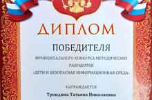 Поздравляем Трондину Татьяну Николаевну, инструктора по физической культуре с победой в муниципальном конкурсе методических разработок «Дети и безопасная информационная среда». Желаем дальнейших творческих побед!/Физик культура буенча инструктор Трондина Татьяна Николаевнаны «балалар һәм куркынычсыз мәгълүмат тирәлеге»дигән методик эшләнмәләр муниципаль конкурсында җиңүе белән котлыйбыз. Киләчәктә дә иҗади уңышлар телибез!
