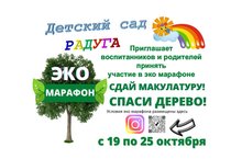 Сегодня стартует эко-акция #НЕДЕЛЯБЕЗБУМАГИ, приуроченная к Всероссийскому Дню без бумаги. Что такое #НЕДЕЛЯБЕЗБУМАГИ? Это неделя с 19 по 25 октября, в течение которой мы будем стремиться уменьшить количество бумаги, используемой в повседневной жизни. Цель акции — обратить внимание на ограниченность природных ресурсов и мотивировать на осознанное потребление. Детский сад «Радуга» запускает эко марафон. Как он пройдет? Отвечаем! Вы собираете макулатуру и сдаете ее воспитателю группы. Фиксируете этот момент на свои телефоны, выставляете фото в социальных сетях с хештегом: