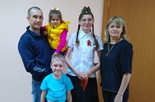 Сегодня, с целью создания символа праздника - Дня Победы в нашем детском саду прошла акция. Возле входа в ДОУ родителям и детям раздавали Георгиевские ленточки. Этот символ - выражение нашего уважения к ветеранам, дань памяти павшим на поле боя, благодарность людям, отдавшим все для фронта. Всем тем, благодаря кому мы победили в 1945 году./ Бүген, бәйрәм символы - Җиңү көне уңаеннан, безнең балалар бакчасында акция узды. Балалар бакчасына керү уңаенда Ата-аналарга һәм балаларга Георгий тасмалары тараттылар. Бу символ-ветераннарга карата ихтирамыбызны белдерү, сугыш кырында һәлак булган сугышчыларны искә алу, фронт өчен бөтенесен биргән кешеләргә рәхмәт белдерү.