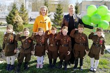 Нашим воспитанникам группы "Витаминки" в сопровождении воспитателя Сайфутдиновой Н.Г. на городском параде выдалась большая честь в день Победы Великой и Отечественной войне возглавить колонну работников образования. /Безнең бакчада тәрбияләнүче "Витаминки" төркеме, тәрбияче Сайфутдинова Н.Г. һәм мәгариф хезмәткәрләре белән берлектә Бөек Җиңү хөрмәтенә багышланган шәһәр парады колоннасында катнаштылар.