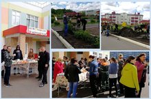 Сегодня, в детском саду состоялся ежегодный трудовой десант по благоустройству территории учреждения. В субботнике приняло участие около 66 человек - это сотрудники и представители родительской общественности ДОУ. /Бүген, балалар бакчасында территорияне төзекләндерү буенча хезмәт десанты узды.Өмәдә 66 кеше катнашты: хезмәткәрләр һәм әти-әниләр.