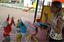 С целью создания эмоционального настроения и праздничной атмосферы в младшей группе "Топтыжки" воспитателем Шашиной Н.Ю. было проведено летнее развлечение под названием "Праздник мыльных пузырей"./ Эмоциональ кәеф һәм бәйрәм атмосферасын булдыру максатыннан "Топтыжки" кечкенәләр төркемендә тәрбияче Шашина Н.Ю. "Сабын куыклары бәйрәме" исеме астында җәйге күңел ачу үткәрде.