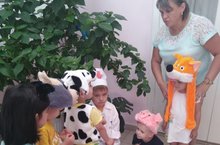 "Гномики" төркеме балалары бүген "Колобок" әкиятендә кунакта булдылар. Балалар әкиятне башта игътибар белән тыңладылар, аннары өстәл театры аша карадылар. Балалар әкияттән бие канәгать калдылар.