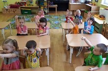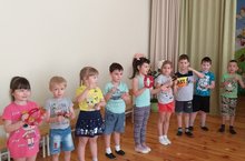 На музыкальном занятии в старшей группе "Улыбка" дети продолжают знакомиться с музыкальными инструментами и играют в игру "Дирижер".