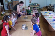 Экология буенча тематик атна кысаларында "Золотая рыбка" икенче кечкенәләр төркеме балалары белән "Тылсымчы Су" - дигән мавыктыргыч дәрес үткәрелде. Балалар эксперимент аша барлык су серләрен ачарга тырыштылар.