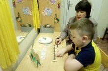 Автоматизация звука – это закрепление правильных движений органов артикуляции того или иного звука. Чтобы повысить интерес к логопедическим занятиям, к неоднократному повторению слова Татьяна Сергеевна использует разнообразные творческие задания и игровой материал. «Нанизывание прищепок», «Дорожка», «Веселый мяч», «Клубочек».