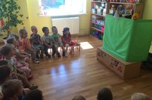 С целью воспитания у детей любви к народному творчеству, воспитатель группы "Кроха" организовала показ настольного театра "Колобок". Во время просмотра, дети эмоционально и заинтересованно следили за развитием действий, повторяли знакомые фразы из сказки.