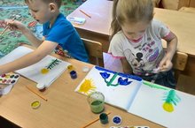 В рамках организованной образовательной деятельности в старшей группе "Радуга" ребята рисовали первые весенние цветы, используя знакомые приемы рисования.