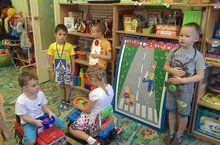 С целью закрепления алгоритма перехода дороги по пешеходному переходу детьми старшей группы "Радуга" была представлена игра-драмматизация "Остановись! Посмотри! Перейди!"