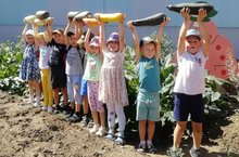 Воспитанники группы "Затейники" вырастили на грядке отличный урожай кабачков! В ходе экскурсии дети отметили разные сорта, отличительные и характерные особенности овоща, познакомились с видами блюд из кабачков, некоторые поделились рецептами
