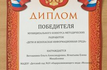 Поздравляем педагогов - победителей и призеров муниципального конкурса методических разработок "Дети и безопасная информационная среда" - Ветошкину О.А., Игнатьеву Е.М., Чугунову Т.С., Шакирову О.В., Грачеву А.В., Хайрутдинову А.А.. Дальнейших профессиональных успехов и побед!