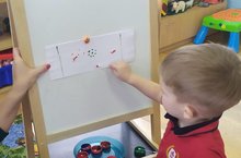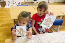 "Колобок" төркеме нәниләре мөстәкыйль рәсем ясау эшчәнлегендә беренче адымнар ясыйлар. Алар беренче тапкыр традицион булмаган рәсем ясау техникасын - мамык таякчыклары белән кулландылар. Нәниләрнең оригиналь һәм матур эшләре килеп чыкты