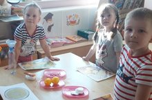 Адаптационный период воспитанников группы "Малышок" проходит легко, ведь дети включаются в различные виды детской деятельности. На занятии по лепке, воспитанники встречали гостя и с большим удовольствием слепили угощение для щенка