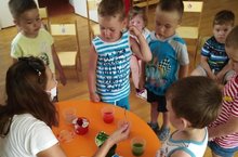 "Колобок" төркеме балалары Тамчыда кунакта булдылар һәм су белән тәҗрибә ясадылар.Тәҗрибә барышында балалар бик күп кызыксынучанлыкларын канәгатьләндерделәр, күп сорауларга җавап таптылар.
