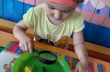 В группы "Сказка" было организованно наблюдение за жизнью насекомых. Дети расширили знания и представления об особенностях внешнего вида и жизненных представлениях насекомых как живых существах, живущих на земле, которые могут ползать, летать в воздухе. Данное наблюдение помогло сформировать у детей базовое представление о живой природе