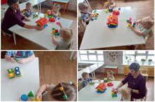 В процессе игры ребёнок может экспериментировать, он сам подбирает правильную деталь, старается приложить, а также учится соотносить величину и форму предметов, координирует свои действия, развивает мышление и фантазирует. -