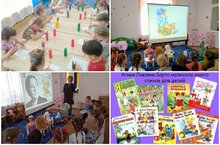 Дети средней группы познакомились с краткой биографией поэтессы, ответили на вопросы викторины, поиграли в игру "Доскажи словечко", вспомнили знакомые стихи. Затем раскрашивали раскраски по стихам Агнии Барто.