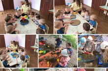 Тематический день - "В мире воды и песка" в группе "Фантазеры" и "Затейники" прошёл с интересом и увлечением. О пользе песка и воды, можно говорить много. Мы решили посвятить этому чудесному дню тематический день. И вот что у нас получилось. Кто то учился лепить куличики, кто то тортики, а кто то старался слепить большой замок. Игры в песочнице на улице не только развивают мелкую и крупную моторику, но и еще воображение. Дети с удовольствием слепили из песка пирожки, тортики, замок и даже большого ежа. Украшали ежа палочками и веточками. Это было очень увлекательное занятие, дети развивали фантазию, учились работать сообща в команде.