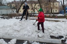 И cнова все сотрудники вышли на средник,дружно раскидали последний снег и почистили территорию от прошлогодней листвы. 08.04.2026