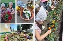У воспитанников группы «Капельки» расширили представление о цветах на клумбе, закрепили умение поливать цветы. Уточнили с детьми названия цветов на клумбе, знакомили с особенностями строения и отличительными признаками цветов; развивали умение ухаживать за растениями, поливали их; развивали познавательную активность в процессе формирования представлений о цветах на клумбе; воспитывали любовь к растениям, бережное отношение к ним.
