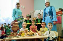 В целях релизации месячника татарской культуры, дети подготовительной группы знакомились с татарскими национальными блюдами.