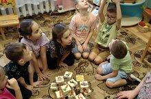 На занятиях воспитатель по татарскому языку Шарифуллина Н.С. активно использует игру "Речевые кубики" - "Сүзле шакмаклар", сделанные по технологии сторителлинг. Эти "волшебные" кубики способствуют расширению и пополнению словарного запаса на татарском и русском языках, стимулируют работу памяти.