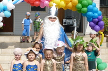 Детям очень понравился праздник они, охотно участвовали в соревнованиях с морскими обитателями: «Кораллом», «Морской Звездой», «Морским котиком», «Крабом». Кульминация праздника - встреча с Нептуном, морским царем, игры с водой.