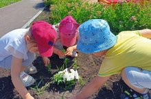 Воспитанники группы "Радуга" любят ухаживать за цветами: убирать сорную траву, рыхлить землю. Им очень интересно наблюдать, как появляются новые листочки, как распускаются бутоны на растениях. А сколько радости и удовольствия доставляет им забота о цветах!Хезмәт эшчәнлегендә катнашырга теләк тәрбияләү - хезмәт тәрбиясе буенча иң төп бурычларның берсе. "Салават күпере" төркеме балалары чәчәкләрне карарга яраталар: чүп үләннәрен җыярга, җирне сугарырга. Аларга яңа яфракларның ничек барлыкка килүен, үсемлекләрдә бутоннарның ничек таралуын күзәтү бик кызык. Ә чәчәкләр турында кайгырту аларга күпме шатлык һәм ләззәт бирә!