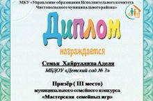 Поздравляем семью Хайруллинна Аделя, ПРИЗЕРА (3 место) муниципального конкурса "Мастерская семейных игр".Педагог-куратор: Сибгатуллина Р.М.