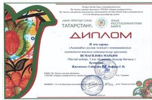 «Мин яратам сине, ТАТАРСТАН!» ачык Республика конкурсы призеры Исмәгыйлева Мәрьямне котлыйбыз. Киләчәктә дә уңышлар телибез!