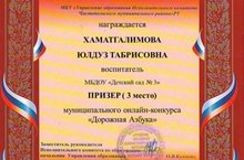 Поздравляем Хаматгалимову Ю.Т. призера муниципального онлайн-конкурса "Дорожная азбука".Так держать.