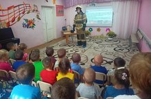 В нашем детском саду прошел Всероссийский открытый урок по основам безопасности жизнедеятельности. Михеев Михаил Сергеевич, пожарный-спасатель провел с воспитанниками беседу о соблюдении правил пожарной безопасности.