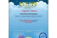 Поздравляем музыкального руководителя Винокурову С.А. с призовым 2 местом в Международном фестивале - конкурсе "Звездопад"