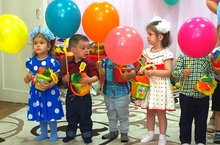 Беренче кечкенәләр төркемендә чыгарылыш кичәсе узды, анда алар биеделәр, уйнадылар, күңел ачтылар һәм бүләкләр алдылар.