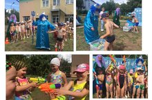 "День Нептуна" - один из самых любимых летних праздников. Сегодня повелитель морей и океанов, царь Нептун, и его подданный, Водяной, пришли на праздник в наш детский сад. Ребята с восторгом участвовали в играх и эстафетах с водой: "Достань жемчужину", "Морские обитатели", "Море волнуется" и др. А ещё царь Нептун организовал водную феерию с водяными пистолетами. Все получили массу впечатлений и положительных эмоций!