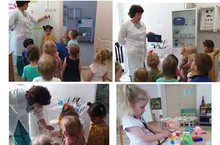 Малыши с недоверием относятся к людям в белых халатах - врачам. Поэтому мы решили провести экскурсию в медицинский кабинет нашего детского сада и познакомить их с работой медицинской сестры. Евгения Владимировна показала ребятам свой просторный, уютный, красивый и чистый кабинет. Провела нас в процедурный кабинет и там познакомила с инструментами, которые нужны в работе медицинской сестры. Ребята узнали много новых медицинских слов (шприц, вата, весы, лекарство, таблетки, йод, зеленка, грелка, термометр и т.д.). Желающим она измерила градусником температуру, посмотрела горло у ребят. А в конце экскурсии рекомендовала детям кушать свежие овощи и фрукты. В общем, впечатлений ребята получили много. Полученные знания дети закрепили в сюжетно-ролевой игре «Больница».